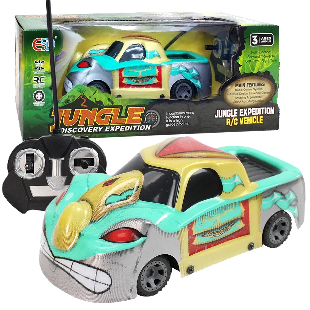 Ben je klaar voor avontuur? Deze coole radiografisch bestuurbare auto in jungle-stijl is precies wat je nodig hebt voor urenlang speelplezier! Met zijn opvallende design en eenvoudige bediening is hij perfect voor ontdekkingsreizigers.