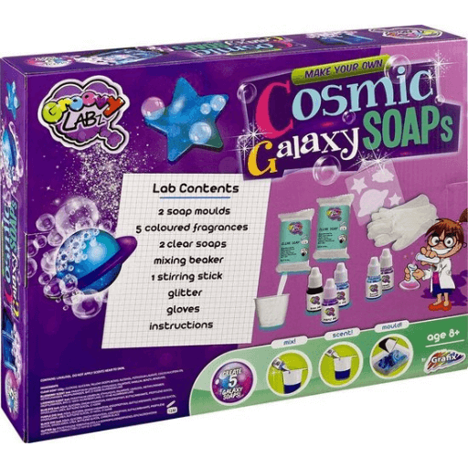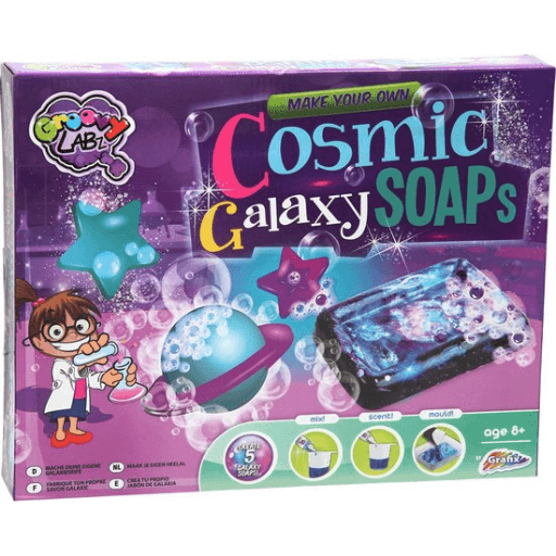 Deze zeepset van Grafix bevat alles wat kinderen nodig hebben om creatief bezig te zijn! Ze kunnen hun eigen handzeep met een Galaxy swirl-patroon maken.